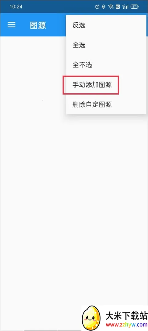 3、这里会显示所有的图源网址,点击右上角的三点图标并点击手动添加图源。
