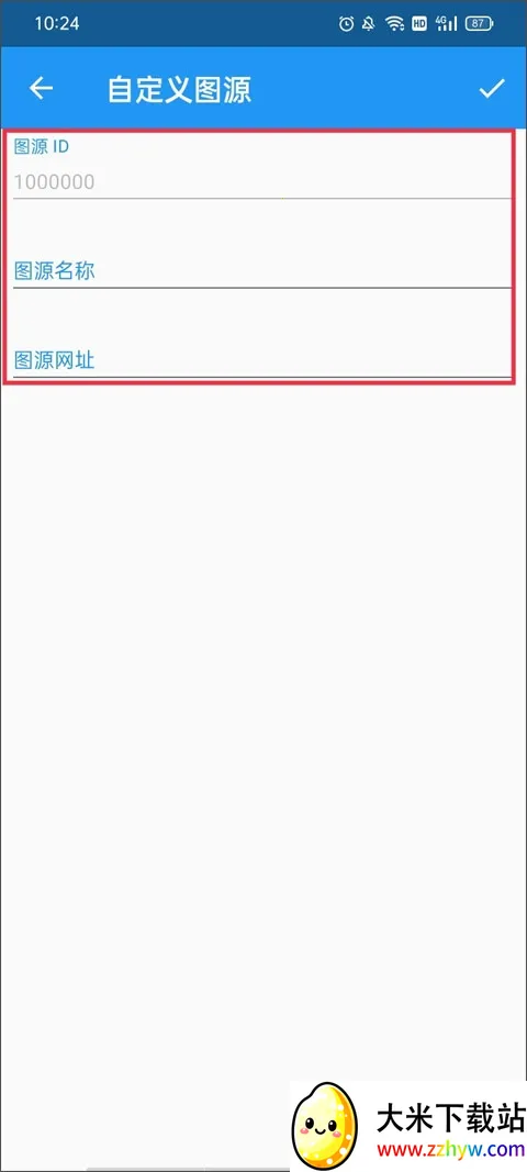 4、输入图源ID、图源名称、图源名称以及图源网址,最后点击右上角的对钩。