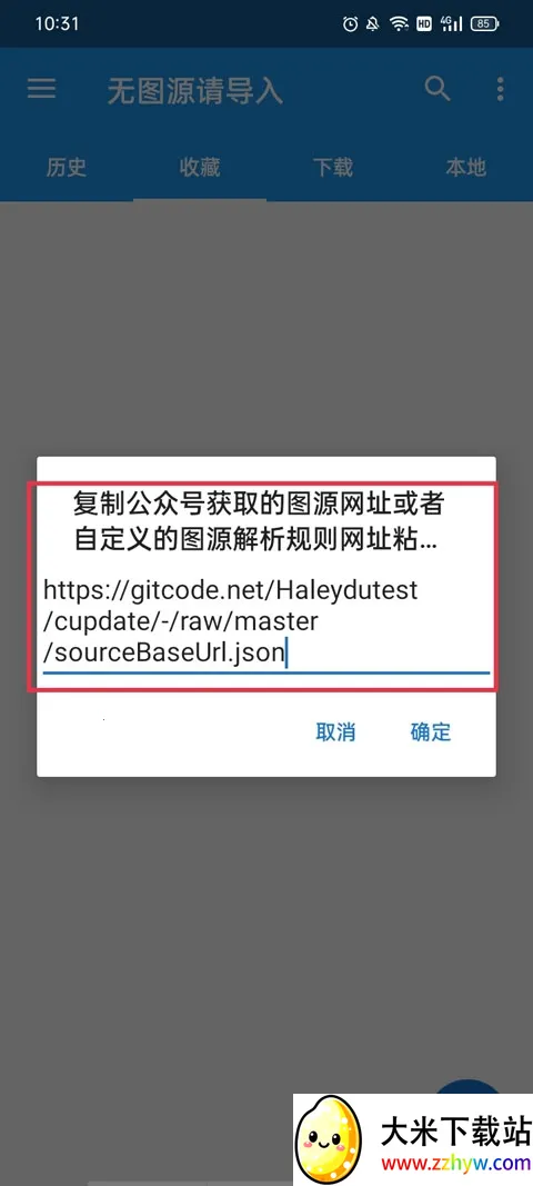 1、同样还是打开app,这时会弹出一个复制公众号……等等提示,将第三方图源网址复制到这里。