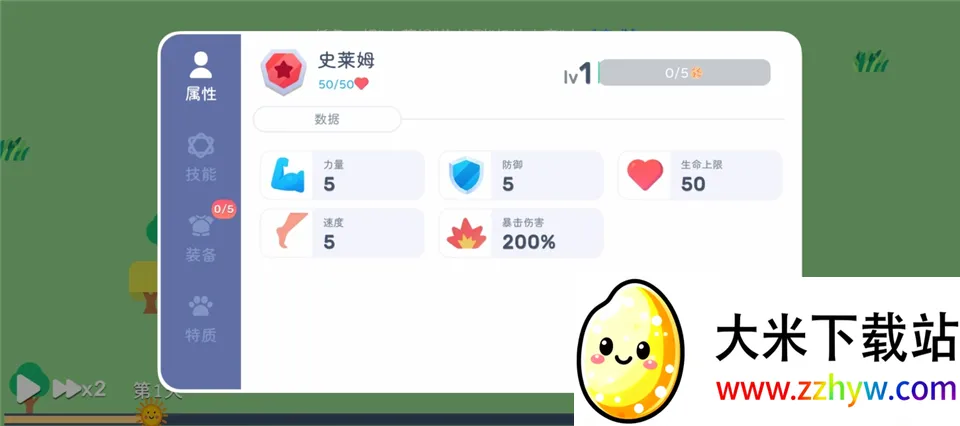 1、进化之火需要史莱姆卡达到5级,双击史莱姆可以查看史莱姆的详情,以下为1级的图。