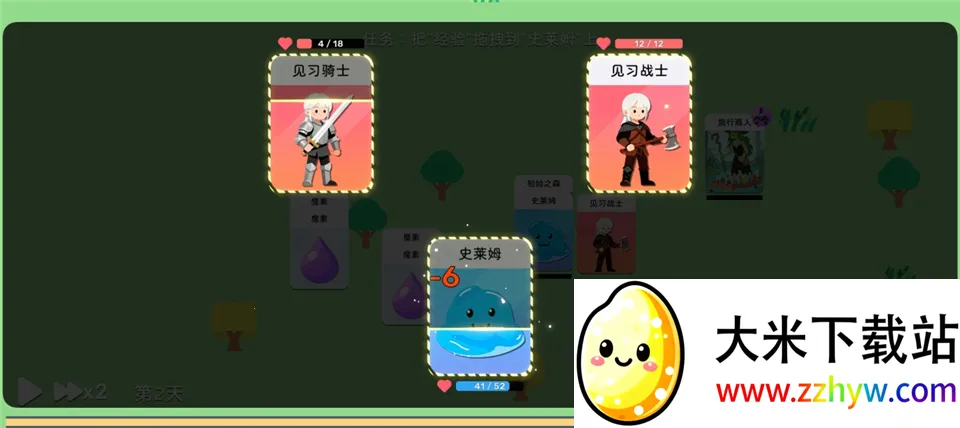 3、将经验卡拖到史莱姆卡上可以让史莱姆获得经验。