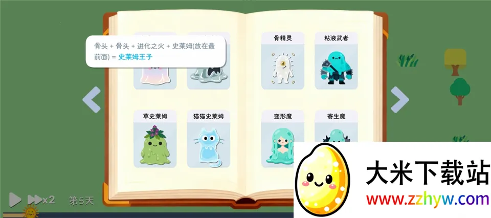 5、点击右下角的书本标识,可以查看不同史莱姆进化所需的卡片。
