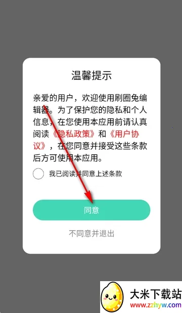 1、打开刷圈兔编辑器app,点击同意隐私政策