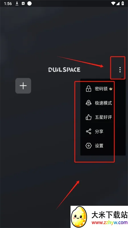 3. 操作便捷:如点击三个点按钮可打开极速模式或设置页面,点击加号按钮能快速添加克隆应用。