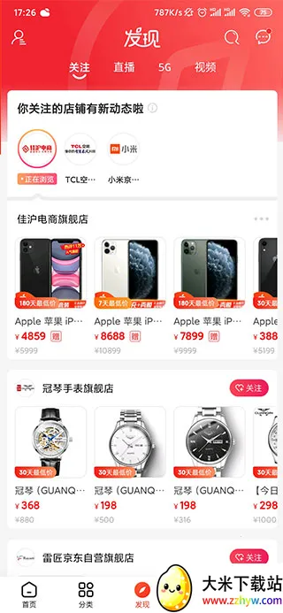 3、而且大家还能关注店铺或者是物品,直接在发现中查看自己的关注;