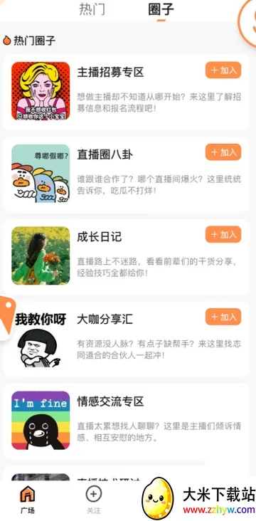 3、进入软件广场热门页面,可查看大家发布的热门动态等