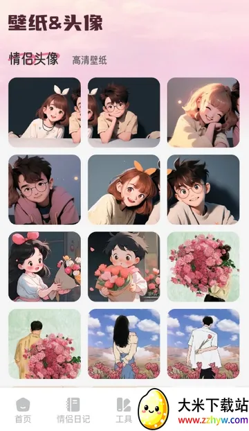 5、点击壁纸,可保留喜欢的情侣头像、高清壁纸等