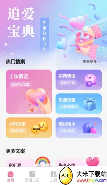 2、进入软件首页,可学习各种实用情话、邀约话术等