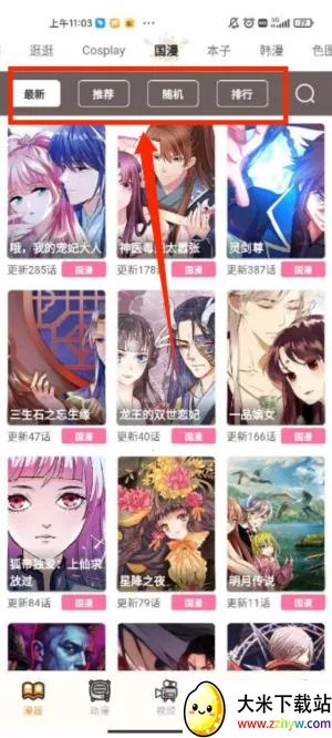 1、启动应用进入主界面,可选择最新或推荐等栏目浏览作品。