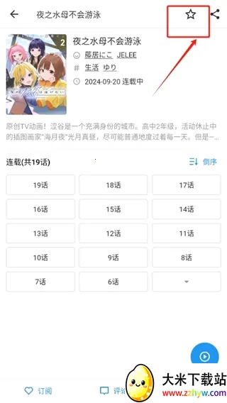 3、进入漫画界面后,点击右上角星号图标【收藏】。