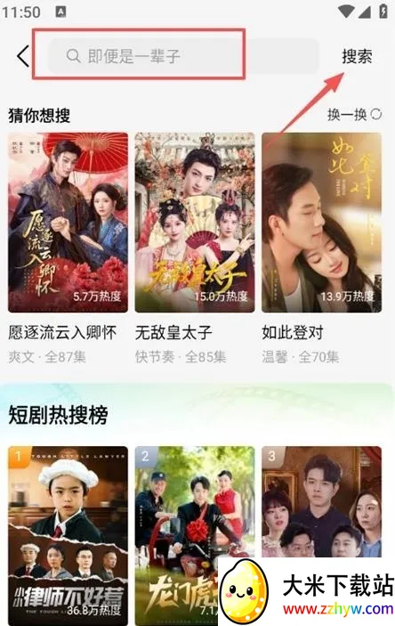 3、可以点击上方搜索框,输入短剧名称或关键词进行搜索