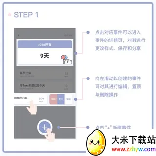 “样式”中可设置各种可爱外观,长按事件可拖动排序。