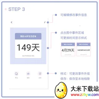 3、样式:可更改事件外观,保存:保存至本地相册,分享:分享至社交平台;