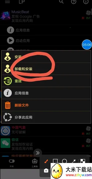 8、点击转文件,选择卸载和安装(不能选择直接安装)