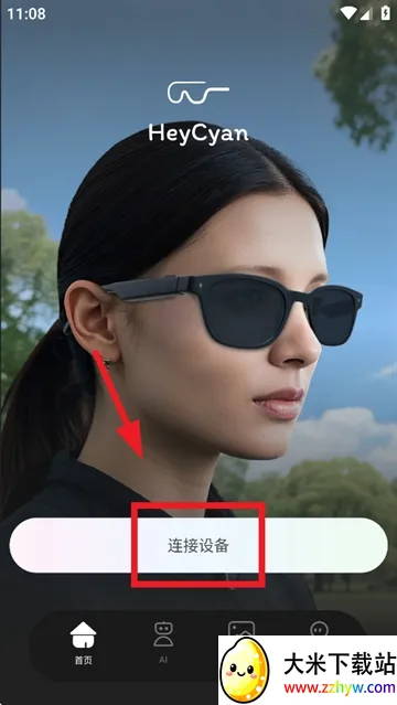 下载安装并打开heycyan智能眼镜app,进入首页后点击连接设备