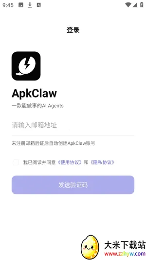 这是一款移动端智能体工具,致力于让安卓用户零门槛体验 AI 智能助手的强大能力。它能绑定飞书、钉钉、QQ 等应用程序。用户通过自然语言下达任务,AI 自动理解意图并精准执行。它适用于多种场景,能让普通手机秒变智能体。配置时需打开权限,选择 AI 大模型并绑定入口应用,不同应用获取 ClientID 和 ClientSecret 的方式不同。登录时在本站下载软件,点击同意进入,输入邮箱账号注册并输入验证码即可。其优势在于本地优先部署保障隐私安全,极简上手,自然语言操控方便快捷,还有精准的屏幕感知引擎。