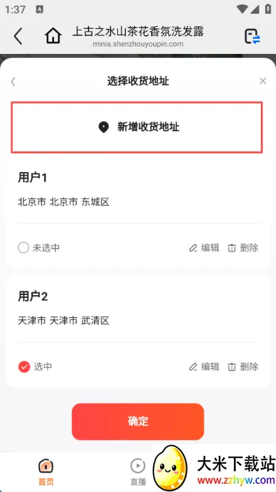 3、在这里可以选择收货地址,点击最上方"新增地址";