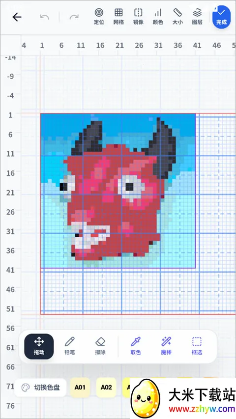 2、导入图片后,自动将普通照片转换成拼豆图纸,这里显示拼豆大小