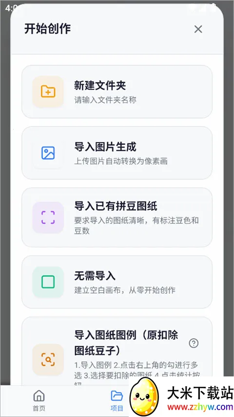1、本站下载打开我嘞个豆拼豆软件,可以从相册导入喜欢的图片,或者直接使用空白画布开始创作。