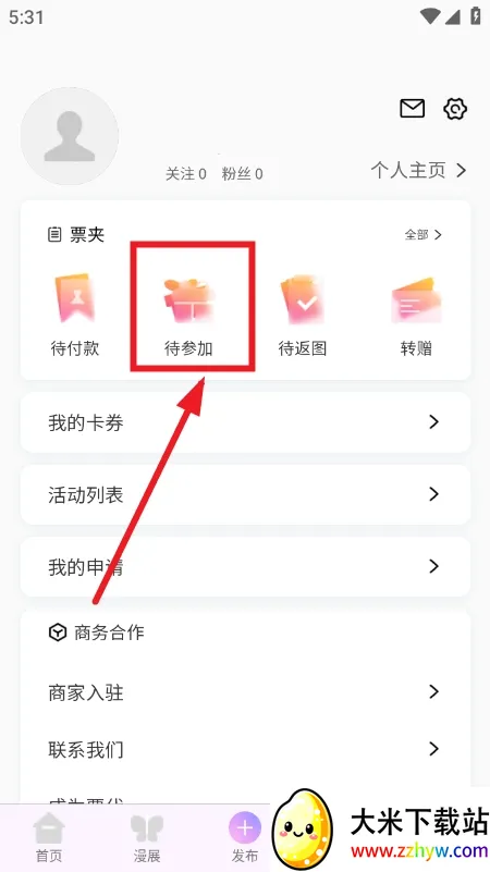 1、登录账号之后进入软件首页,点击底部漫展入口。