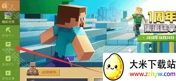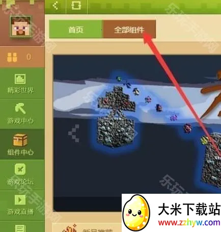 1、首先打开我的世界,在客户端左方找到去往组件中心的按钮,打开它。