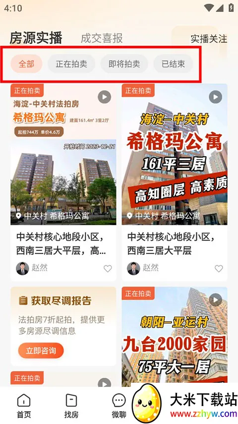 5、大家还可以通过观看实播,查看的正在拍卖和即将拍卖的房子。