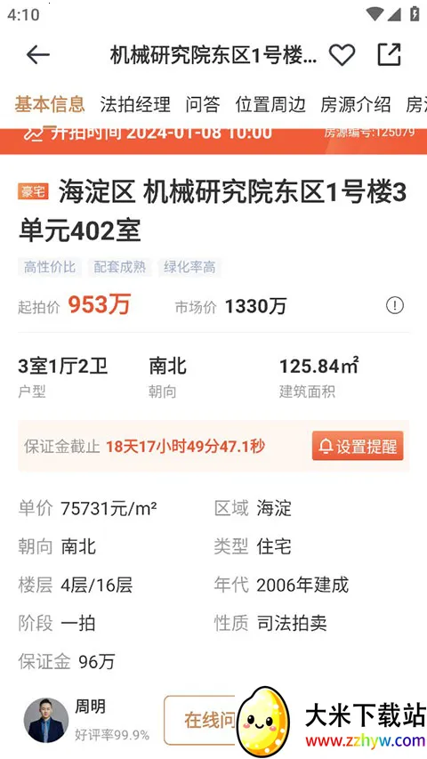 4、挑选完成后,可以点击主页查看该房源的相关信息,点击收藏,或者是在线提问。