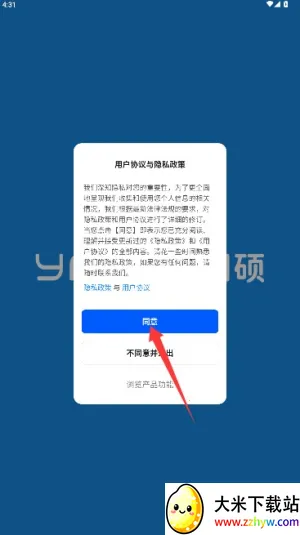 1、打开应用后仔细阅读用户协议和隐私政策,确认后点击同意按钮进入应用。