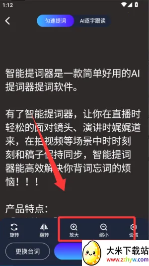 1. 操作简单便捷,仅需简单设置就能快速提词,可根据自身需求调整悬浮提词的字体大小、颜色及播放速度。