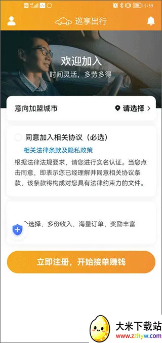 1.在本站下载安装巡享出行司机端,打开并注册登录。