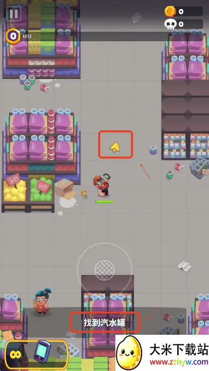 第一步,找到汽水罐,玩家需要跟着黄色箭头走