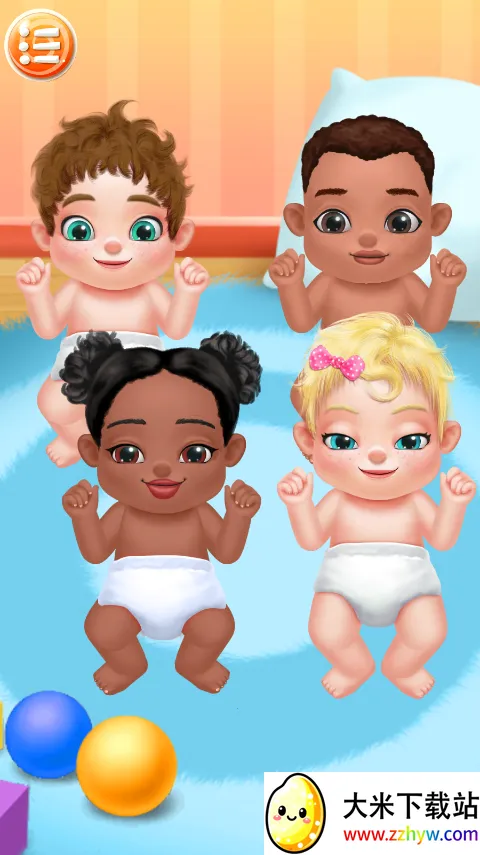1、在本站下载安装该游戏,打开进入点击播放键,这里有四个宝宝,你要先把每个宝宝都哄开心,点击逗弄他们就行。