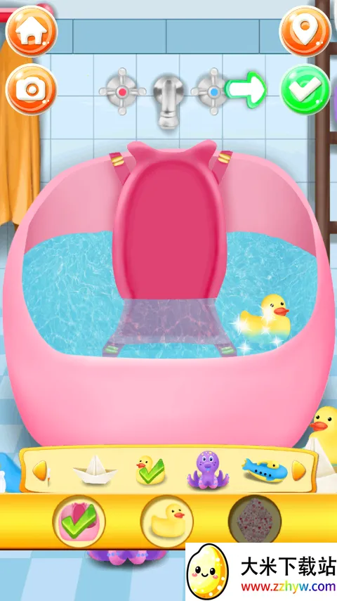 2、随后你就会进入照顾宝宝的任务当中,首先要做的是点击第一个关卡帮宝宝洗澡。