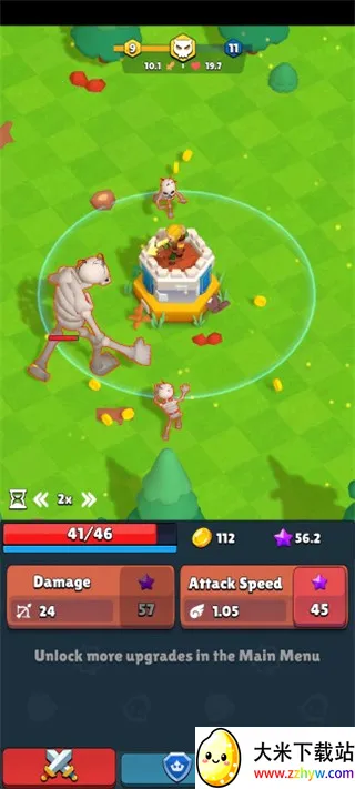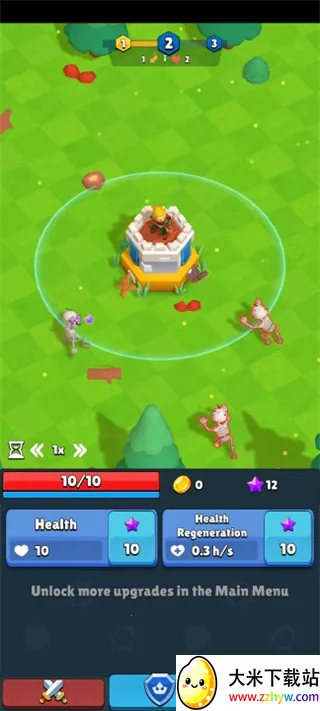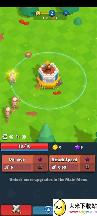 2、在这个魔法世界中,你需要不断的击败邪恶的怪物,并通过升级弓箭手的攻击伤害,击败更加强大的怪物;