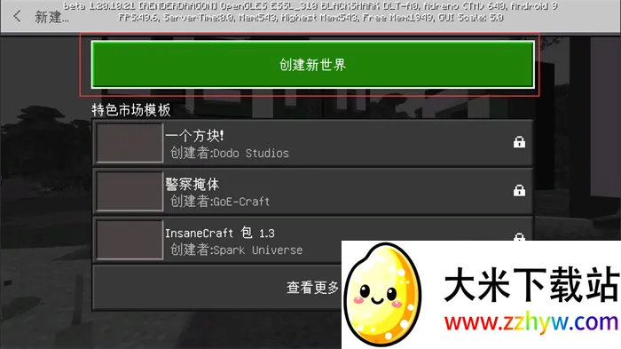 4、选择生存或创造模式和难度等,然后点击左上角的创造按钮;