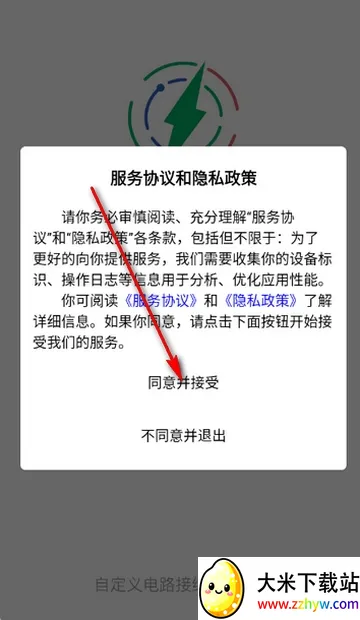 1、打开电工仿真接线助手app,点击同意隐私政策