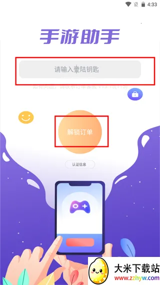 2、随后打开手游助手,进入输秘钥界面,输入已获得的秘钥。