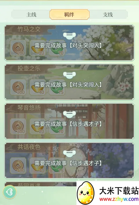 玩家通过选拔、升级宫女、解锁故事羁绊等可以解锁羁绊成就,领取丰富成就奖励。