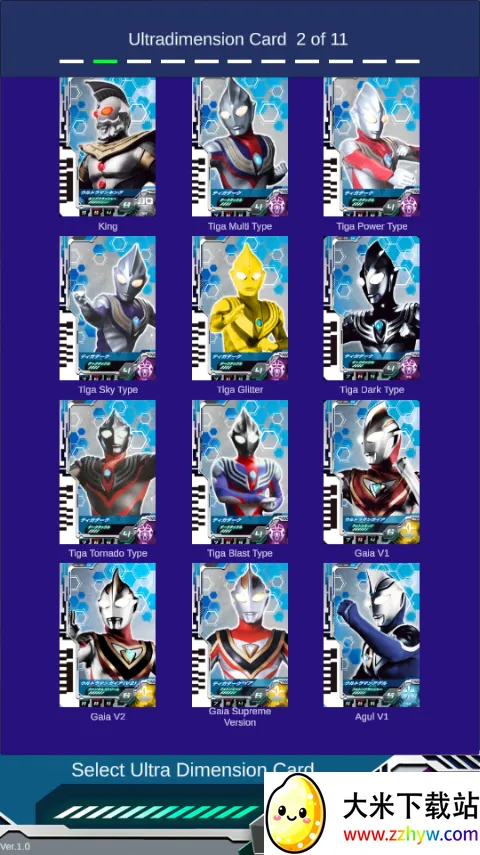 2、接下来你会看到奥特元次卡牌大全,所有的奥特卡牌都在这里了,并且随着德凯奥特曼电视剧的更新,这里的卡牌也会随之增多。