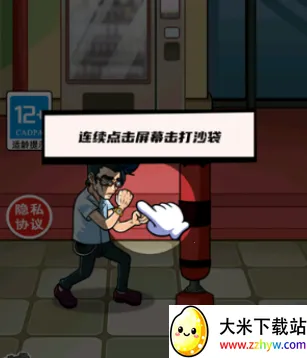 3、然后我们就可以练拳了,点击屏幕即可击打沙袋,我们首个任务是打碎8个沙袋;