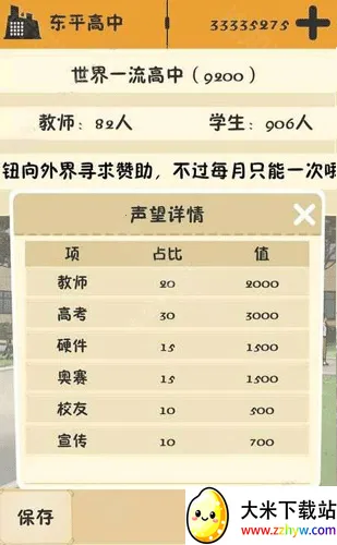 2. 真实模拟学校发展,从普高升至世界一流。