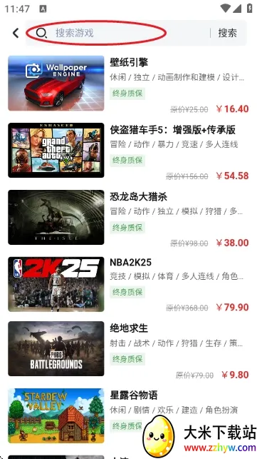 2、点击顶部搜索框,输入您想查找的游戏名称,快速精准定位目标游戏。