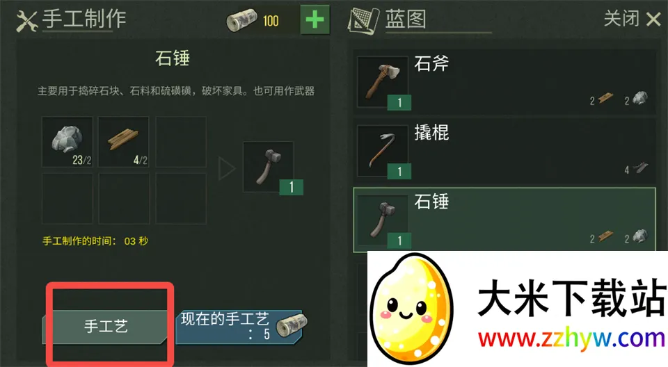 3、选择需要制作的物品,点击左下角【手工艺】开始制作。