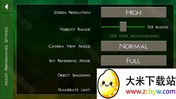 2、“settings”中的“performance”中,可对游戏中的画质进行自定义设置,对于设备配置较低的玩家,可适当的降低画质,来提高游戏的流畅性
