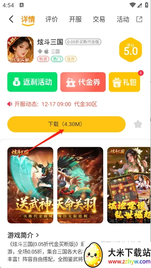 5、玩家点开想玩的游戏进入详情页,点击下载,等待安装完成即可。
