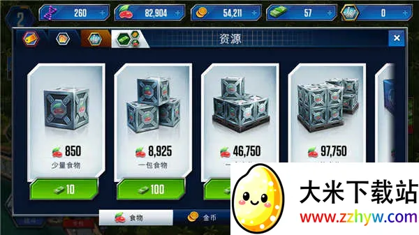 2、食物:恐龙升级资源。玩家可通过食物工厂生产、升级、现金购买等方式获得食物。当玩家达到相应等级后,更可升级食物工厂,提升食物产出量。