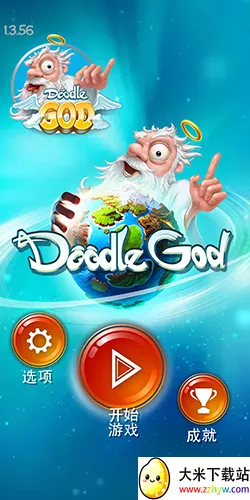1、在涂鸦上帝闪电手游的开始界面,点击左侧的【Options】按钮。