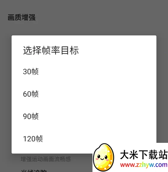 2、之后点击画质增强下方的画面配置,可以看到更改画质和帧率的设置。