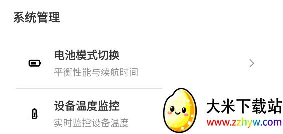 6、我们可以切换电池的模式和查看目前手机的温度,根据自己的设备的情况选择合适的设置,延长手机的续航时间和对手机进行温度预警。