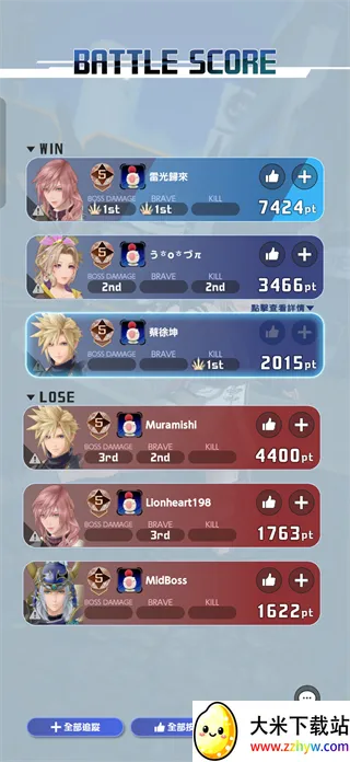3、通过不断积攒勇气值消耗boss血量,最后率先击杀boss的队伍获胜,要注意击败玩家只是延缓他们进度,击败boss才是胜利目标。